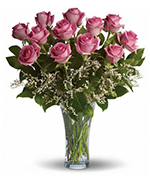 Picture-perfect soft pink roses make a beautiful gift for the lovely lady in your life. Wife, mother, daughter or sweetheart, she's sure to cherish this bouquet of pastel pink roses accented with seeded eucalyptus and arranged in a clear glass vase. ...