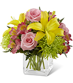 The Well Done Bouquet brings together bright roses and sunny Asiatic lilies to congratulate your special recipient on a job well done! Pink roses, green Fuji chrysanthemums, pink Peruvian lilies, yellow Asiatic lilies and lush greens create a colorful, celebratory flower bouquet arranged within a cl [...]